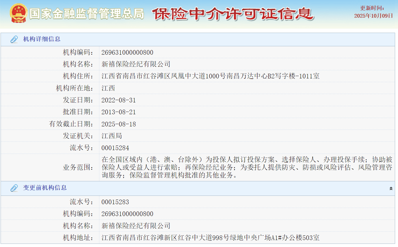 新禧保险经纪目前有在业的13家分支机构,分布于湖南4家,江西6家,广东2家,辽宁一家。而且有网销资格,价格只需要1000万左右,值得考虑。(完)