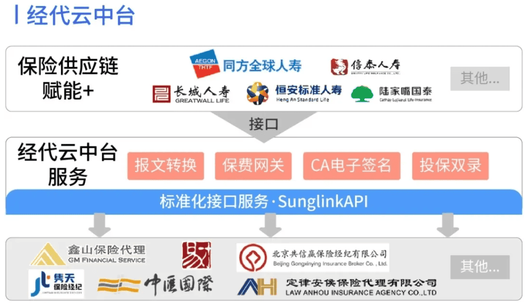 经代云平台, 通过淞菱经代云赋能,我们为经纪/代理公司伙伴们,提供保险供应链技术服务、简单来说,就是提高单证投保效率、保险公司只要在淞菱平台完成了产品投保接口集成,只需要经过简单配置就可以部署到客户系统平台中,目前已经陆续完成了数十家保险公司投保接口的集成开发,包括:中意人寿、同方全球、长城人寿、陆家嘴国泰、信泰人寿、恒安标准、中德安联、恒大人寿、大家保险、北京人寿、复星联合健康、爱心人寿、昆仑健康、弘康人寿、和谐健康、平安健康、天安财险、亚太财险、史代财险、中路财险、横琴人寿等等。