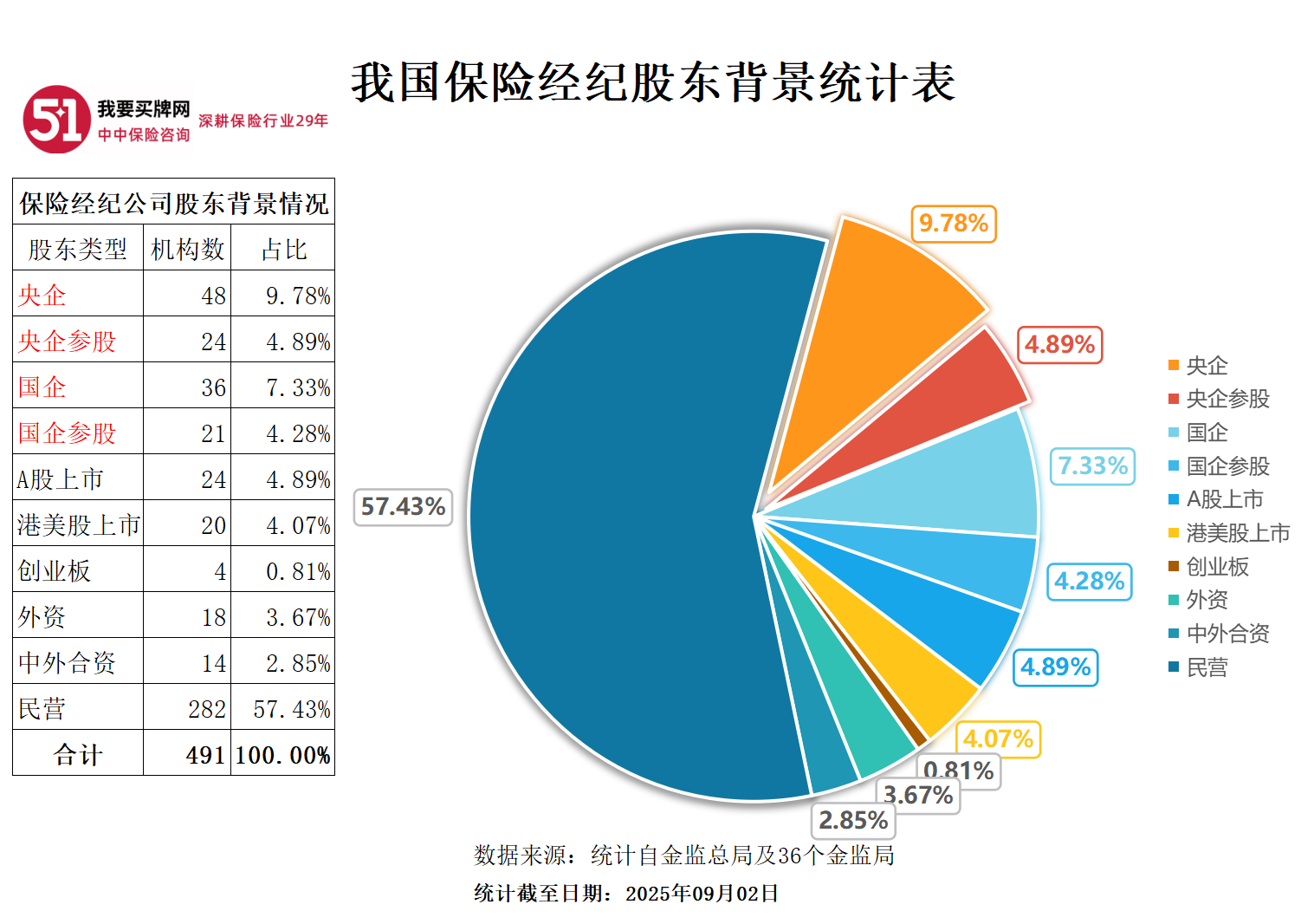 近年来,随着保险行业监管政策的逐步放开与市场集中度的提升,国有资本加速布局保险中介领域。截至2025年9月,全国491家保险经纪公司中,国资背景机构共129家,占比达26%,介入更深。(含央企、国企、央企参股、国企参股)。237家全国性保险代理公司中国资背景的38家,占比16.1%。本文基于央国企保险经代机构数据,结合行业趋势与典型案例,剖析国资入主保险中介的核心逻辑,为国有资本深化行业布局提供参考。