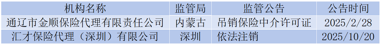 截至2025年10月31日,今年全国性保险中介公司仅3省市局(江西、广西、辽宁)有新开二级机构。
