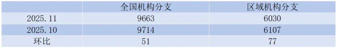 截至2025年11月04日,全国保险中介机构分支9663家,环比减少51家,区域保险中介机构分支6030家,环比减少77家。
