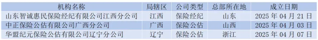 截至2025年10月31日,今年全国性保险中介公司仅3省市局(江西、广西、辽宁)有新开二级机构。